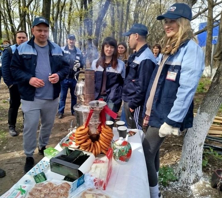 Сотрудники предприятия привели в порядок рощицу в Пролетарском районе. А по окончании мероприятия их ожидал стол с самоваром и сушками.